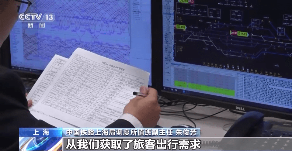 中国铁路上海局调度所值班副主任 朱俊芳:铁路部门通过12306等系统获取了旅客出行需求的热门线路后,各调度工种信息共享,紧密联系协同动作,积极组织高铁临客的开行,从我们获取旅客出行需求到加开临客列车,最短可以在两小时之内实现。