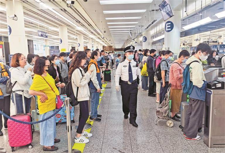 深圳特区报讯 (记者 戚金城)记者从深圳边检部门获悉,“五一”假期首日,福田、蛇口、西九龙站等口岸再次刷新全面恢复正常通关后的客流纪录,皇岗口岸创入境人员单向客流量新高。