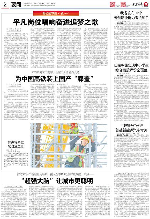 “五一”国际劳动节假期,在景区服务窗口、在项目施工现场、在生产车间一线,处处可见山东儿女忙碌的身影。他们诚实劳动、勤勉工作,锐意创新、敢为人先,用汗水和智慧书写着新的奋斗故事。
