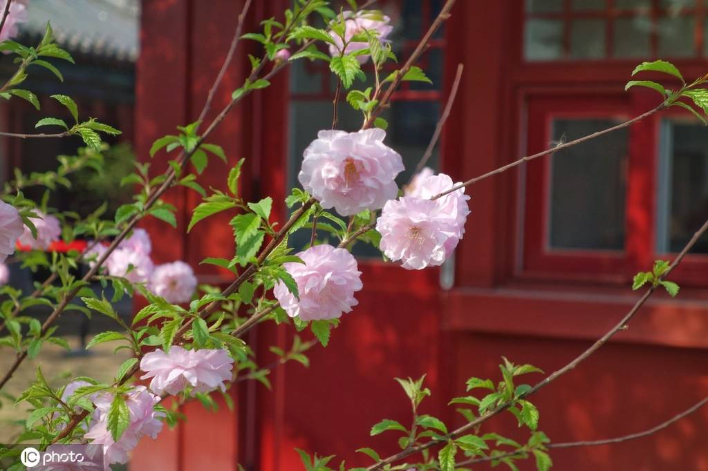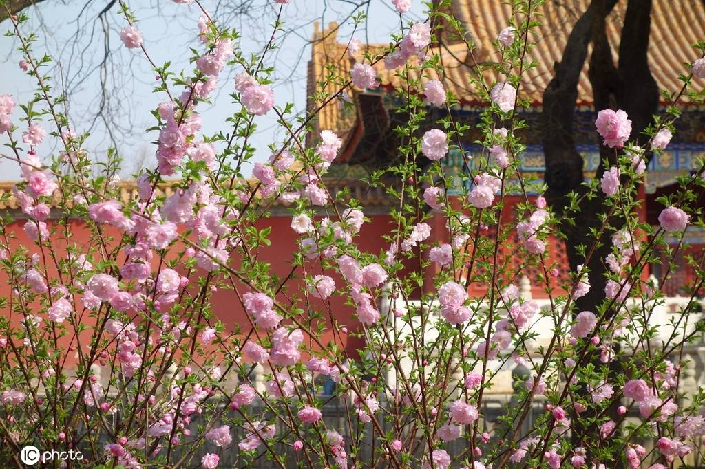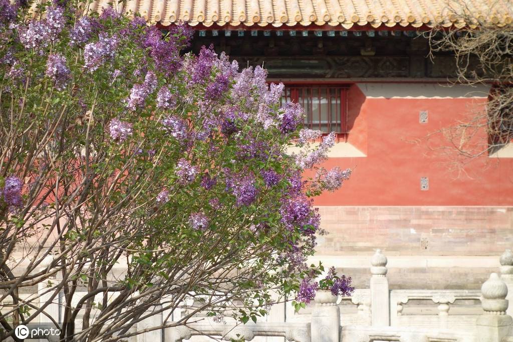 北京故宫武英门繁花似锦,丁香花榆叶梅吐露芬芳。