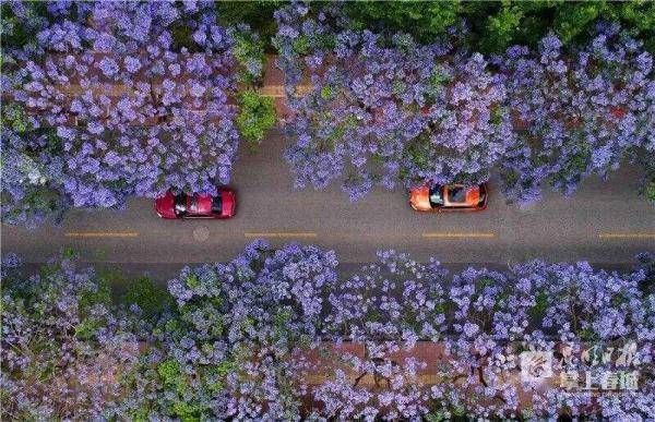 近段时间的春城街头,绚烂的蓝花楹竞相盛开,微风过处,花瓣翩翩,让人仿佛进入一个梦幻世界。