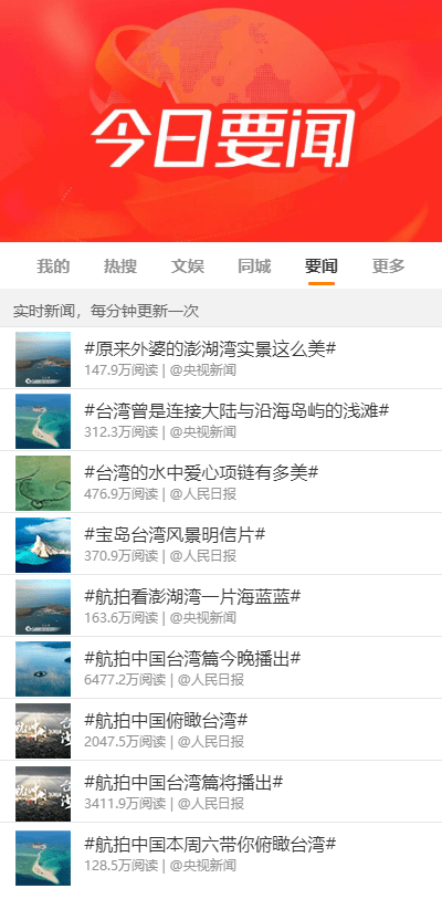 “画面精美、解说绝美、配音华美!”节目未播先热,播后更火。截至当晚23点,台湾篇相关热搜已达16个,#宝岛台湾?景明信片# #航拍看澎湖湾一片海蓝蓝# #台湾曾是连接大陆与沿海岛屿的浅滩# #台湾的水中爱心项链有多美# #小学课本里的日月潭如今什么样#等话题接连引发热议,登上各平台热榜。