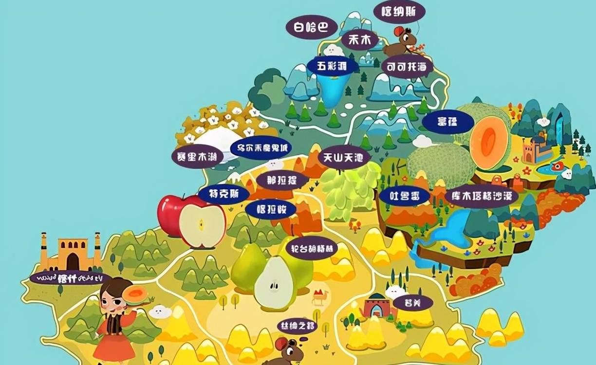 在新疆一直流传着这样的顺口溜:“吐鲁番的葡萄哈密的瓜,叶城的石榴人人夸,库尔勒的香梨甲天下,伊犁的苹果顶呱呱,阿图什的无花果名声大,下野地的西瓜甜又沙,喀什的樱桃赛珍珠,伽师的甜瓜甜掉牙,和田的薄皮核桃不用敲,库车的白杏味最佳。一年四季有瓜果,来到新疆不想家”。