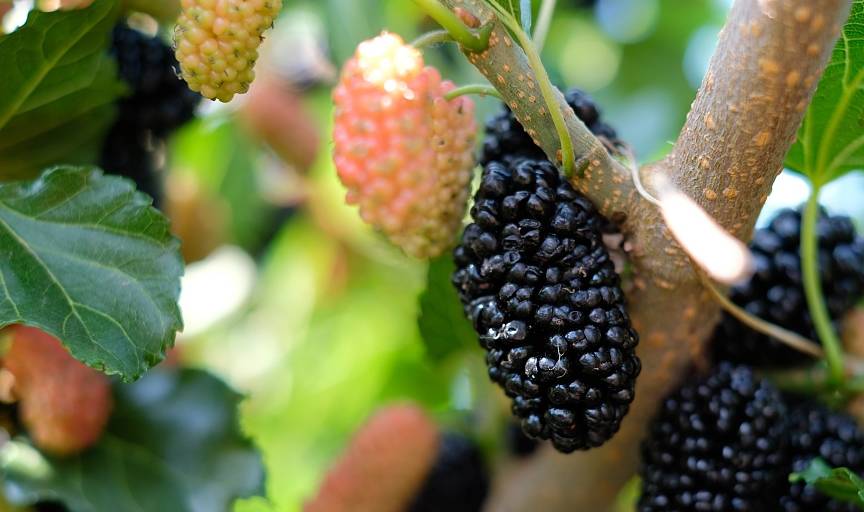 桑葚,被新疆维吾尔族人民称为“阿克玉祖木”,意思彩色的葡萄。分为白、紫两种品种,味甜汁多,是新疆人常食的水果之一。