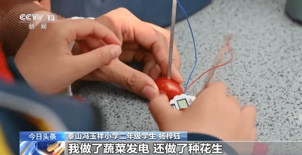 泰山冯玉祥小学二年级学生 杨梓钰:我做了蔬菜发电、还种了花生,感受到了在农田里种田的乐趣,今天我非常开心,希望以后能常来这里。