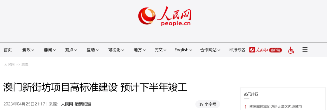 人民网4月25日报道,横琴“澳门新街坊”项目高标准建设,大量采用标准化及规范化的预制件,以“砌积木”方式建设4000多个单位,均顺利通过质量验收。目前已全面进入精装修及外墙饰面工程,预计今年下半年竣工验收。