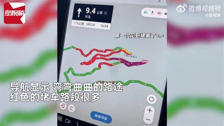 原标题:五一假期200公里开车11个半小时!女子吐槽 :导航堵紫了,第一次见