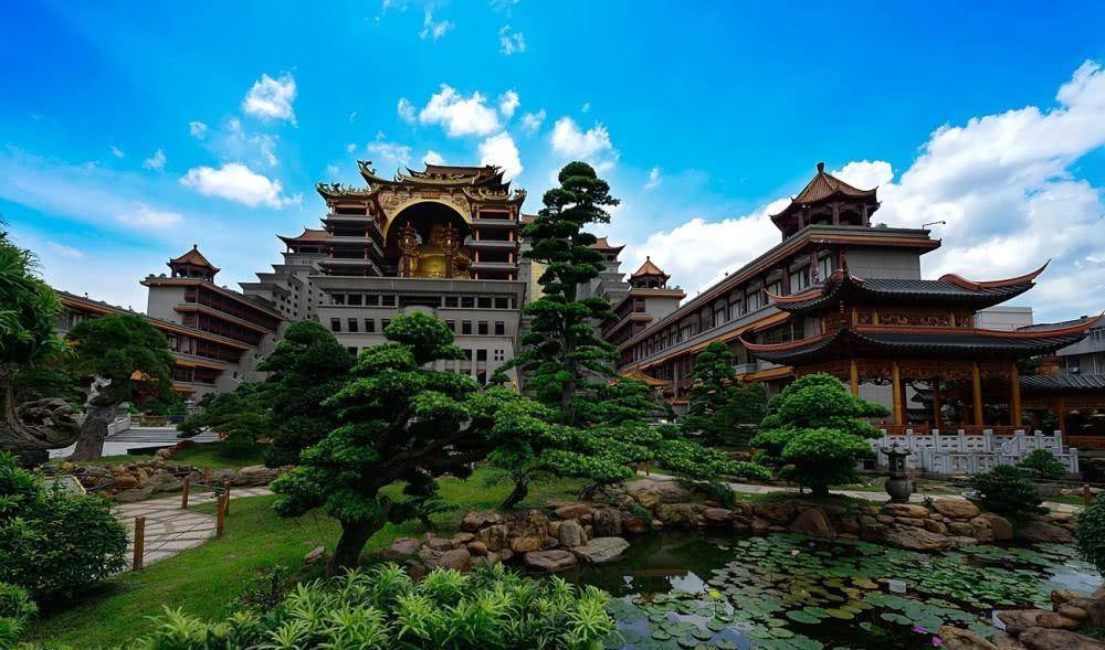 云天文化宫有很多之最。其中的这里有着东南亚最大的铜佛像,由1000多块铜所组成,高30米,重达600多吨,从远处看文化宫,就可以看到这个大铜像。整个文化宫的建筑格局很有规划,从前往后,分别要经过园林,金鸡,金线吊葫芦,主楼。