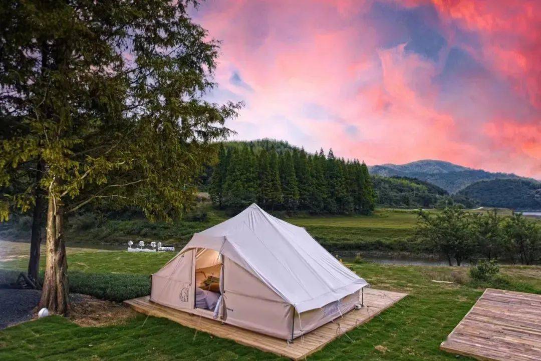 风之谷的蓝色森林营地占地1500亩,拥有精致露营帐篷500顶。它曾获评过2022年度浙江省十佳户外露营地,也是长三角十大人气露营地。