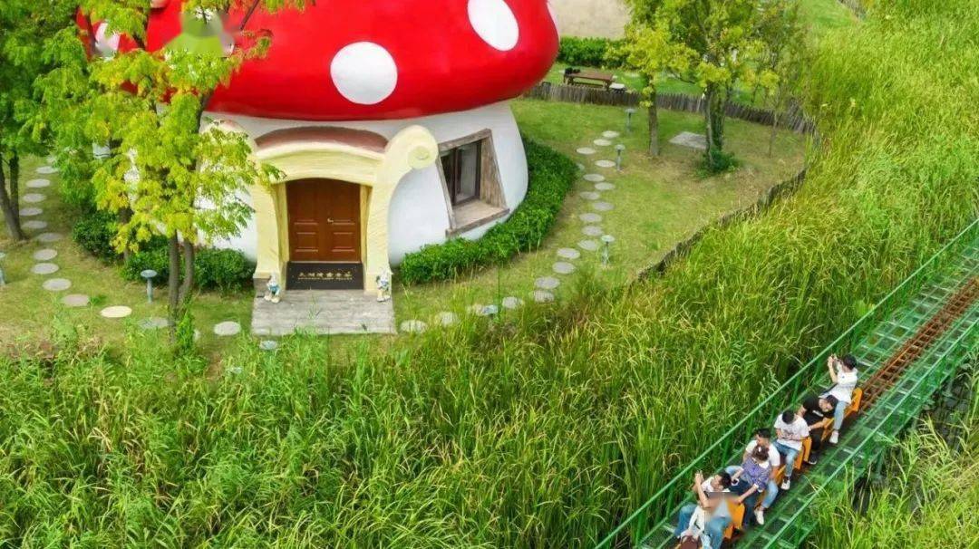 这里有着大片农田和树林水道,营造出浓浓的江南鱼米之乡的风貌。在各种民宿、露营地、咖啡店和陶艺馆外,林渡暖村还有一段1.3公里的轨道,小火车在水杉林里慢慢开往太湖站,一秒get宫崎骏同款童话世界。