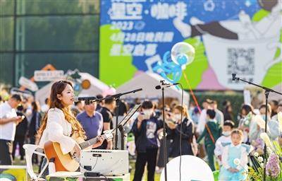夜幕低垂,华灯初上,星空演艺拉开序幕。吉他悠扬,民谣歌手缓缓诉说。“躺在草坪上,听着歌,看着星空,真是太惬意了。”市民小欧躺在草坪上,头枕着胳膊,说道。