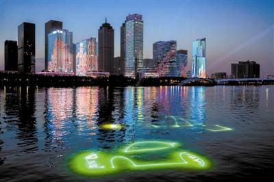 在于家堡滨河公园洲际酒店西侧广场,天津歌舞剧院交响乐团、歌剧团为游客上演了一场精彩绝伦的百人交响音乐会,响遏行云的旋律奏响夜空。伴随着激情澎湃的交响乐,泰达企业一飞智控的千架无人机编队升空与古典音乐同步起舞,以天为幕,以城为景,陆续绘就出“向海乐活节”主题字样以及滨城多处地标建筑,变幻的光影、生动的画面在这场引人入胜的无人机表演秀之下轮番呈现,泰达于响之夜也显出别样浪漫。此外,海河河面上的激光秀表演格外吸睛,滨河公园海河沿线设置了激光投影装置,灯光直射海河河面,在夜晚将光与影的视觉效果放大,展示天津母亲河的波澜之美,与海河两岸的楼宇灯光交相辉映,点亮海河之夜。