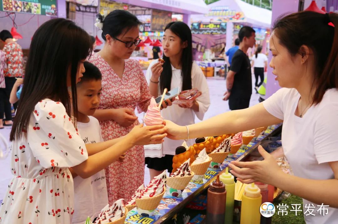 “我要冰淇淋!”“我也来一份!”在美食嘉年华现场可以看到,特色鱿鱼、风味烧烤、麻辣小龙虾、臭豆腐、冰淇淋等美食琳琅满目,每个摊档前都聚满了食客。活动还准备了精彩的文艺表演、亲子游戏和福利等。