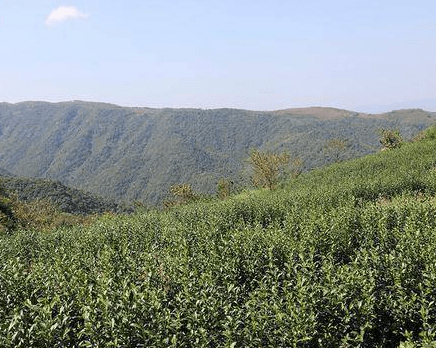 从水库前方的盘山公路往西再上山顶,龙岗岭上,登高望远,静山茶园铺展绵延。