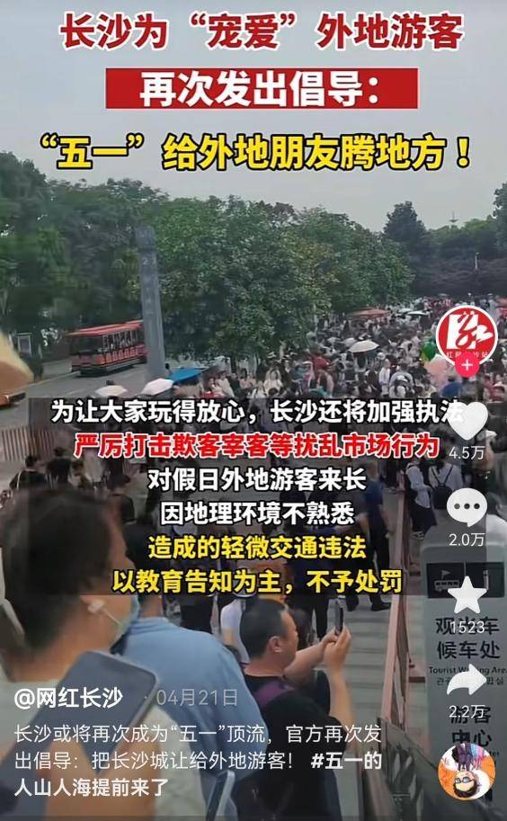 这个“五一”,长沙更是拿出掏空家底的姿态,号召市民“腾城迎宾”,把停车位、游览空间让给外地游客。