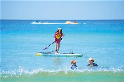 4月30日,游客在万宁石梅湾体验桨板的乐趣。海南日报记者 李天平 摄