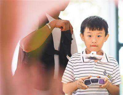 4月29日至30日,“天生爱飞”潮玩西秀FPV无人机竞速运动推广活动在海口开展。图为一位小朋友操纵穿越机准备通过障碍。通讯员 黎佳琦 摄