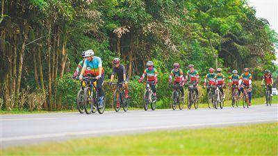 4月29日,骑行爱好者在海口市演丰镇骑行,欣赏乡村风景,乐享运动快乐。 海南日报记者 张茂摄