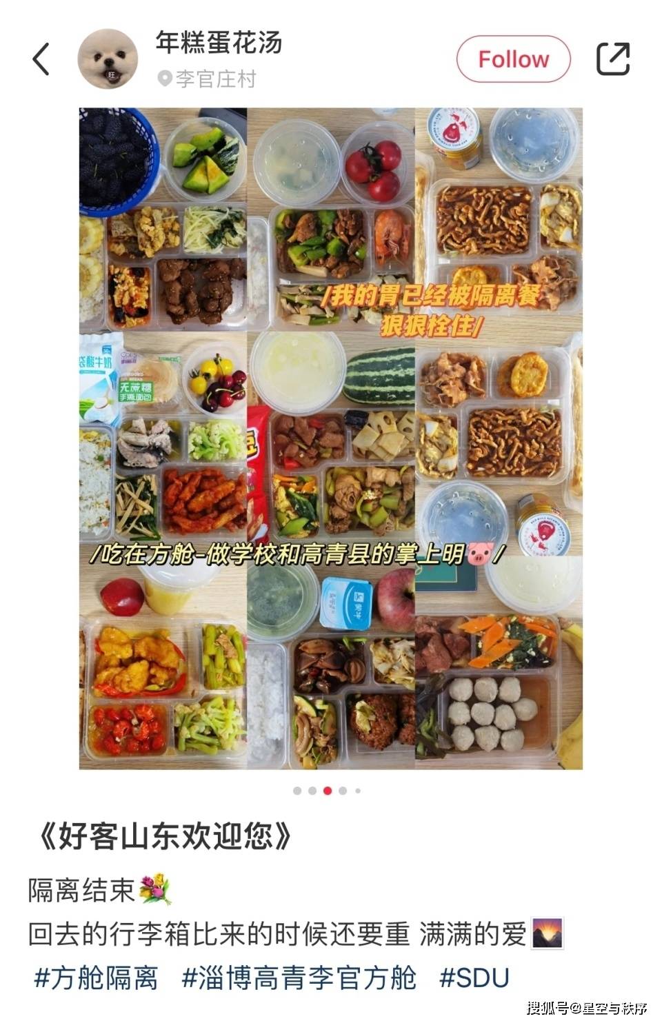 淄博当地老百姓也非常支持,还说:孩子来了就是我们自己的亲人,我们可以挨饿,但是绝对不能亏待了孩子们。谁要让这帮在淄博隔离的孩子受一点罪,所有淄博人民都不会放过他。淄博老百姓是这么说的,也是这么做的。7天的隔离时间,每天饭菜都不重样,甚至有的同学说几天时间自己都胖了六斤!