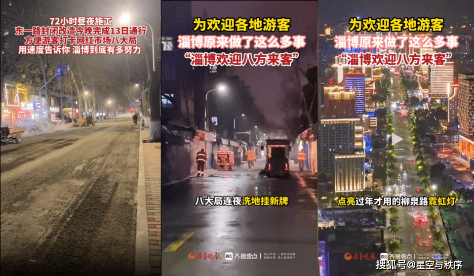 淄博大大小小的景区免费,各个酒店统统半价入住,帅哥美女成排迎接游客,烧烤店老板为排队的游客免费发放热包子、雪糕,每个出租车司机都收到不准宰客,不打表不能载客,否则直接停运通知。出租车司机说领导下令“谁要是敢砸了淄博的锅,我就砸了谁的碗”。