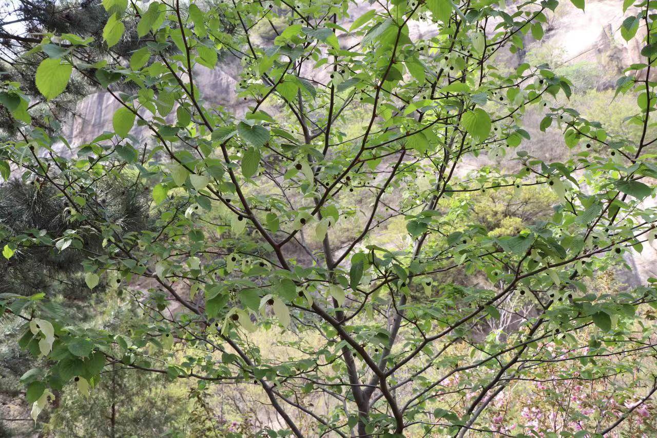 经过20年的精心养护,这棵山涧中的“鸽子花树”正值盛花期,位于幽谷神潭景区的中下游,游客进入景区后,行走10分钟便可见到。