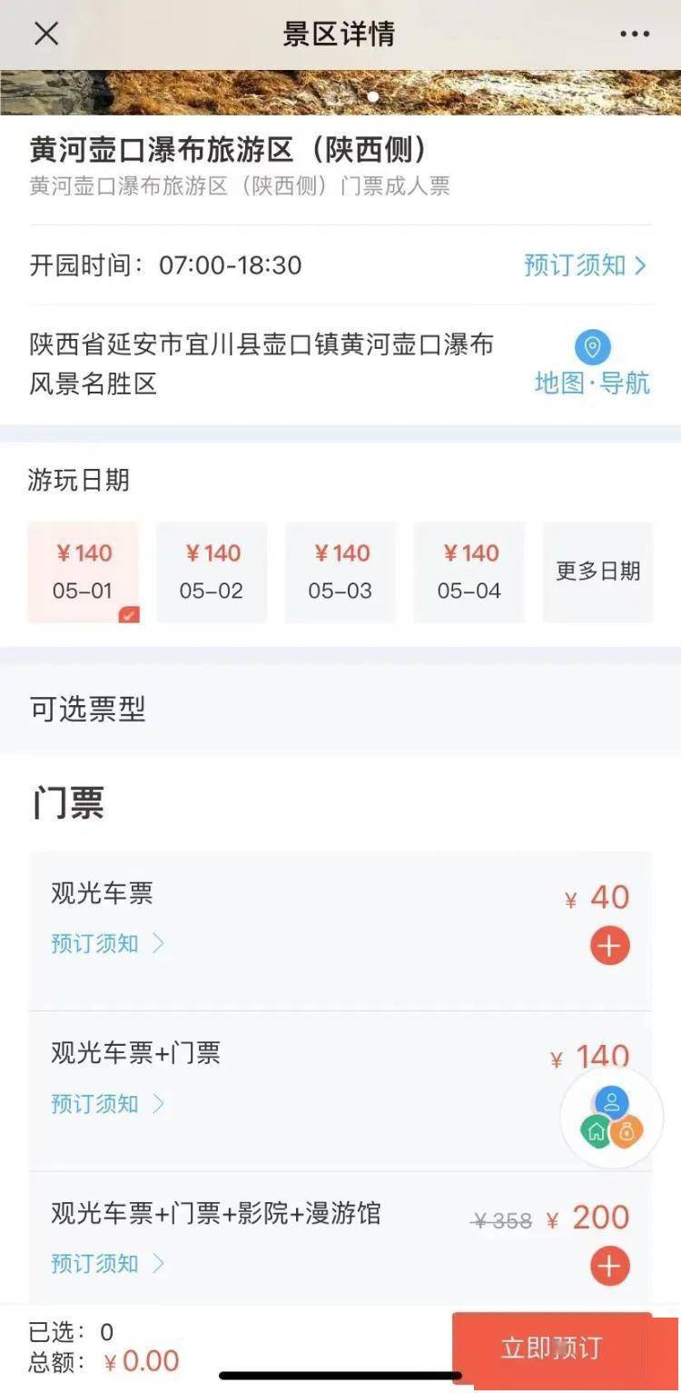 黄河壶口瀑布旅游区(陕西侧)全价票加观光车价格为140元,山西壶口瀑布全价票+车票(线上)为120元。