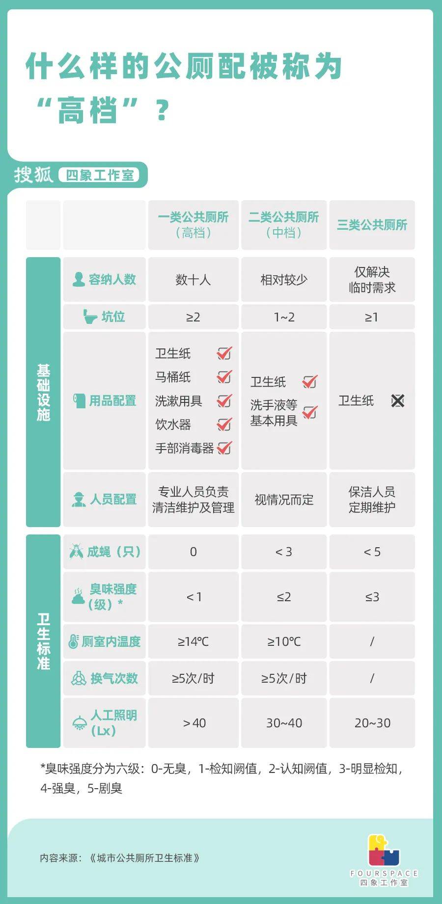 很多人不知道的是,公共厕所也是有“三六九等”的。按照建筑标准和所在场所的不同,公厕分为高中低三档,也就是建造者所说的“一类”、“二类”和“三类”。
