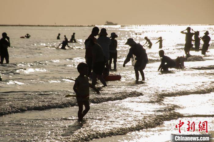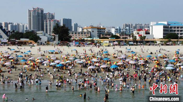 原标题:广西北海迎旅游高峰 海滩上游人如织