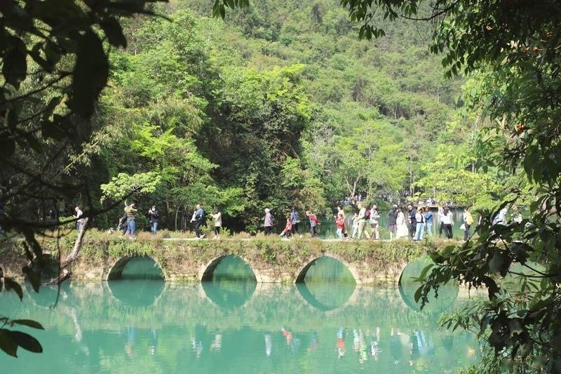 广东游客周蓝蓝说:“早就听说过小七孔的美景,但是一直没有机会领略。这次终于来到这里,景色特别漂亮,非常值得一来!”