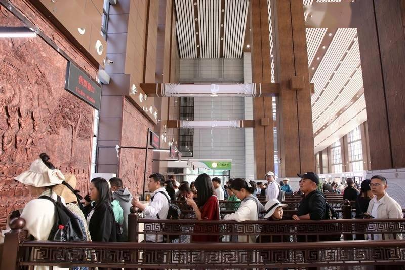 游客在小七孔景区东门集散中心游玩。