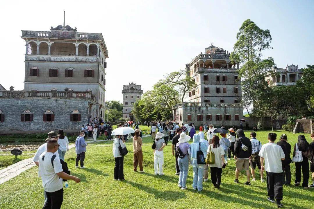 △ “五一”假期期间,开平碉楼迎来了众多游客。