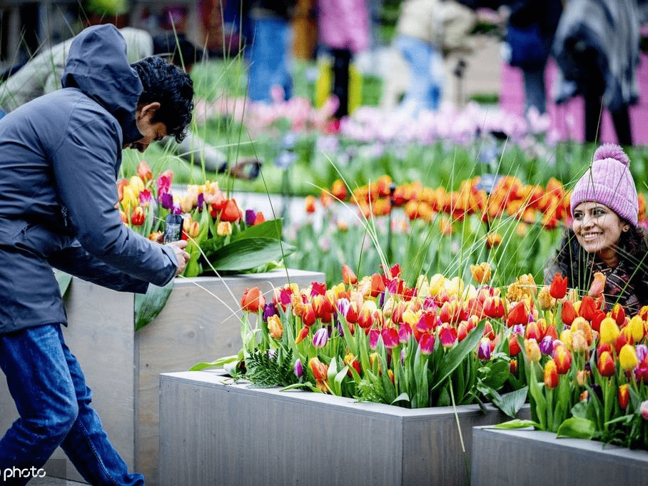 原标题:库肯霍夫花园鲜花缤纷盛开 吸引众多游客拍照