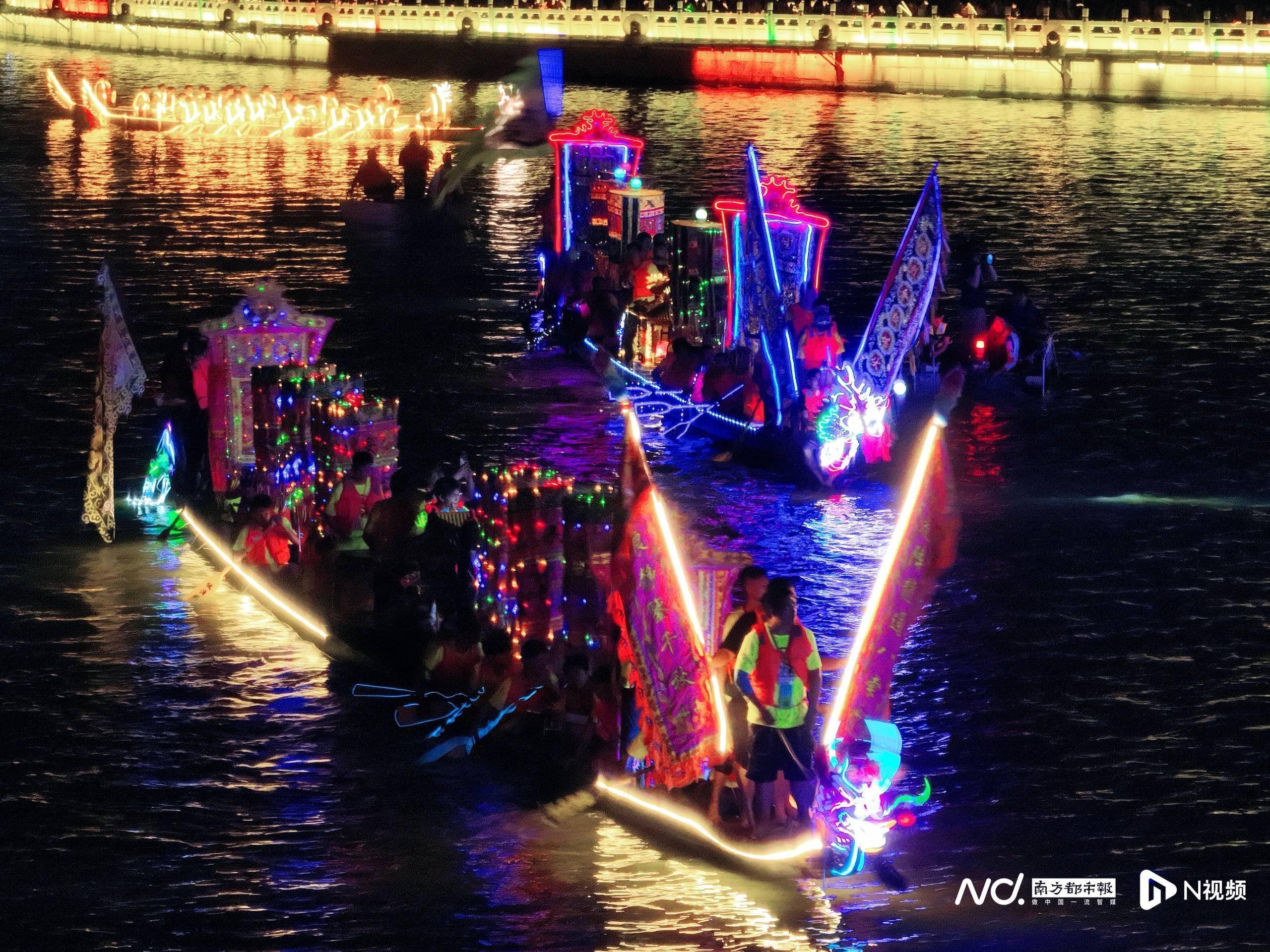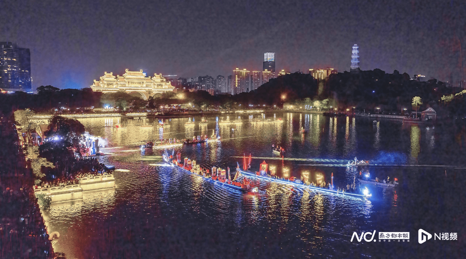 龙舟夜游、醒狮表演、灯光秀……在这个“人从众”的五一假期,顺峰山公园的夜晚很精彩!