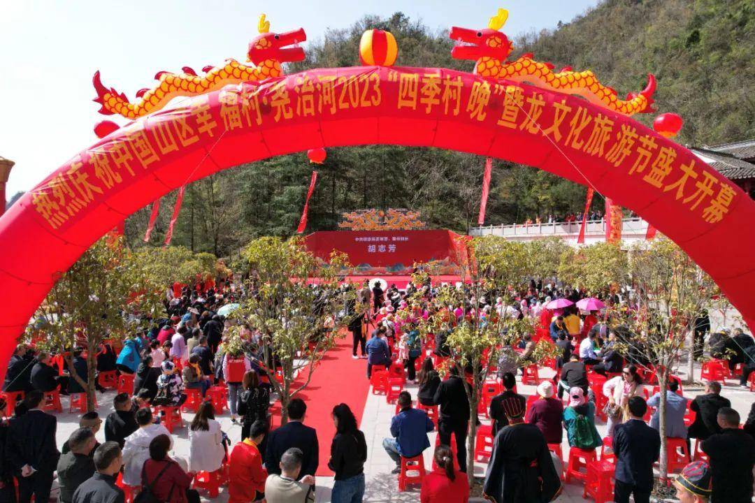 4月15日,在湖北省保康县尧治河村老龙宫景区广场,随着电子大屏上倒计时九响洪亮的撞钟声音,“龙行尧治河 留醉天下客”中国山区幸福村·尧治河2023四季村晚暨龙文化旅游季正式拉开帷幕。