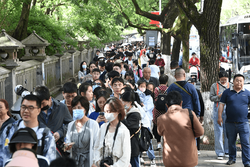 据悉,4月30日早晨7点,湖南省博物院就开始了“排队模式”,截至9点,队伍已经排到隔壁烈士公园的西门。往好了想,在长沙排一次队能打卡两个景区。