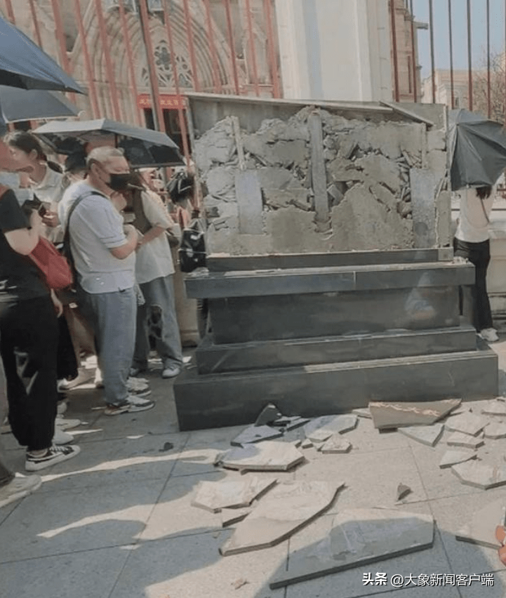 4月30日下午,广州圣心大教堂的文物保护标志碑碎裂的消息引起了社会关注。据报道,网友“沽叽”称自己在现场看到,一个小孩爬到圣心大教堂的文保标志碑上拍照,拍完之后,小孩从碑上向前跳,导致碑面脱落破碎。破碎的水泥块砸到了小孩的妈妈,小孩腿部也擦破流血。