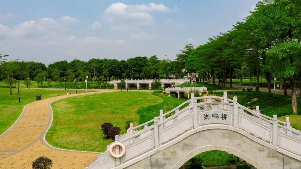 位于松白路西侧,是石岩环湖碧道的主入口之一。公园占地面积106万平方米,其中5500平方米的“万象广场”平坦开阔,与台阶下的山川出云平台,形成高低相映衬,坐看云起时,24座水系景观桥尽显水乡风貌。再往里走一尺间下,2公里禾雀花长廊风姿绰约,这里还有碧波环绕的眠花岛、白鹭等候鸟栖息地、柳下观鱼莲花池,俨然是一幅诗意和谐的生态画卷。