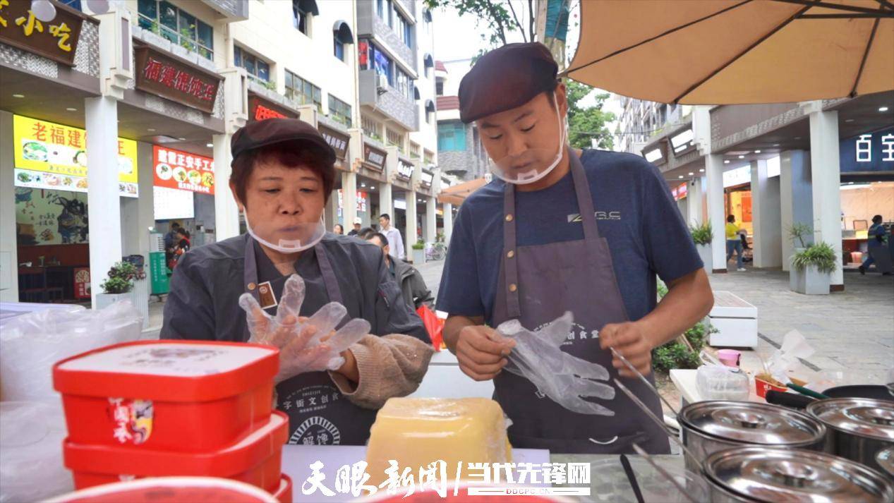 “这个文创糯米饭非常好吃,特别有嚼劲,我朋友吃了米豆腐,也说辣椒特别香,真是名不虚传!”作为第一批食客,游客小汤对手中的这份美食赞不绝口。