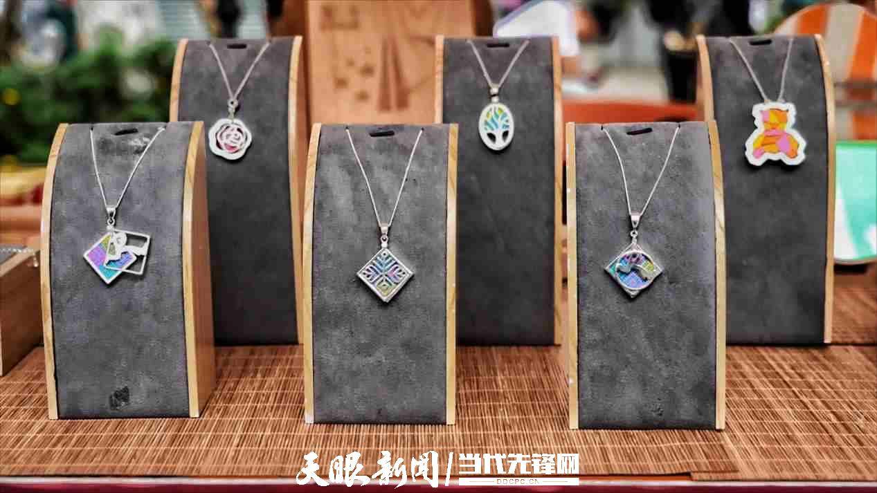 “这个银饰融合了花溪苗绣和苗银的元素,是咱们十字街的LOGO,非常有特色,只有这里才买得到。”花溪区十字街社区文创非遗项目推广人刘畅向记者展示手中的工艺品,色彩鲜艳的苗绣和特别打造的银饰相结合,这条可以挂坠活动的项链也是游客们咨询最多的商品。