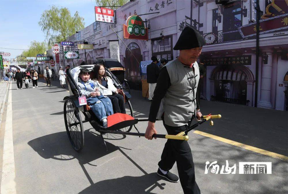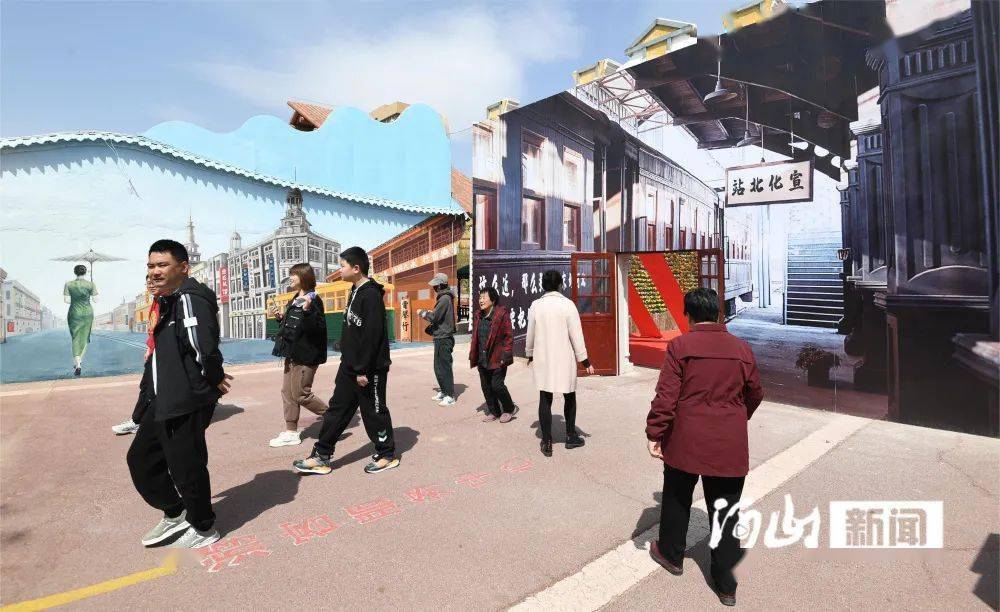 4月29日,游客在宣化区假日绿岛“张家口往事”主题街游玩。