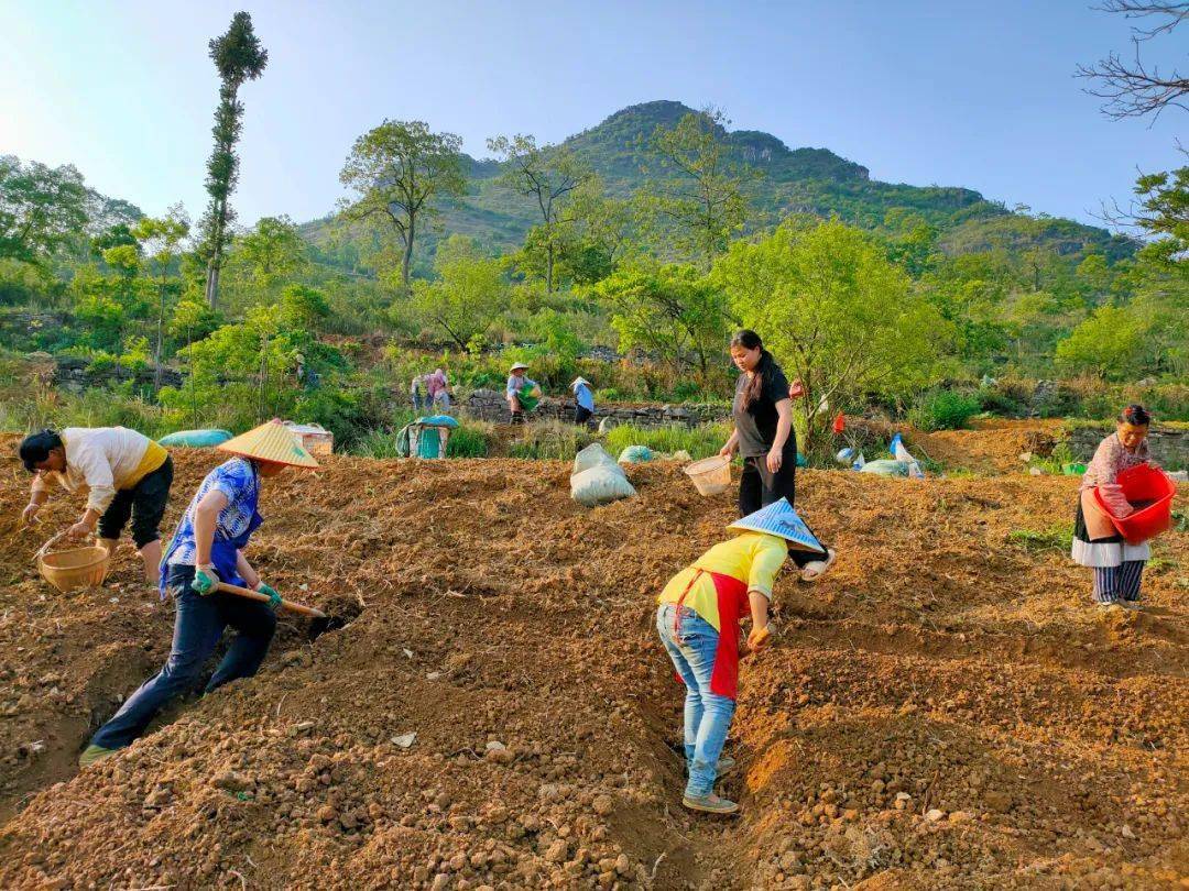 一大早,打翁村村民潘永美及家人就开始忙碌,在小黄姜种植地里翻土、起垄、撒肥、插种,大家分工明确,配合有序。