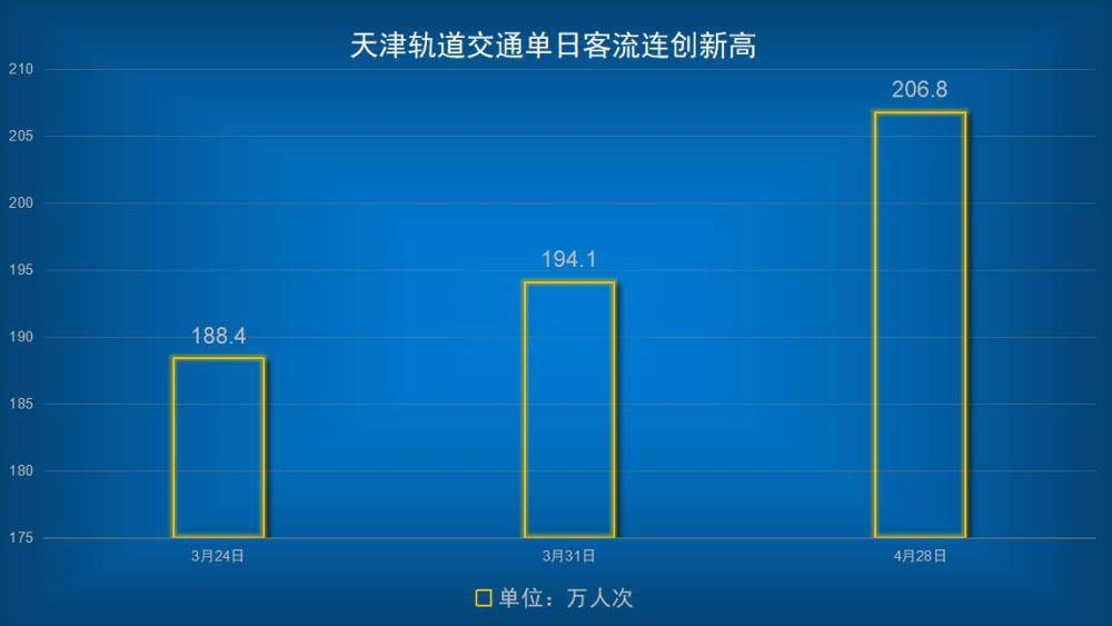 4月28日,天津轨道交通单日客流达到206.8万人次,再创历史新高!36天内,天津地铁日客流3次突破历史新高,见证了今年的“五·一”小长假出行高峰序幕正式拉开,也见证了津城百姓享受生活的幸福表情和城市活力的持续提升。