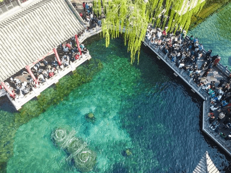 尤其在趵突泉三股水畔,人潮涌动,众多游客从不同的角度赏泉打卡拍照。