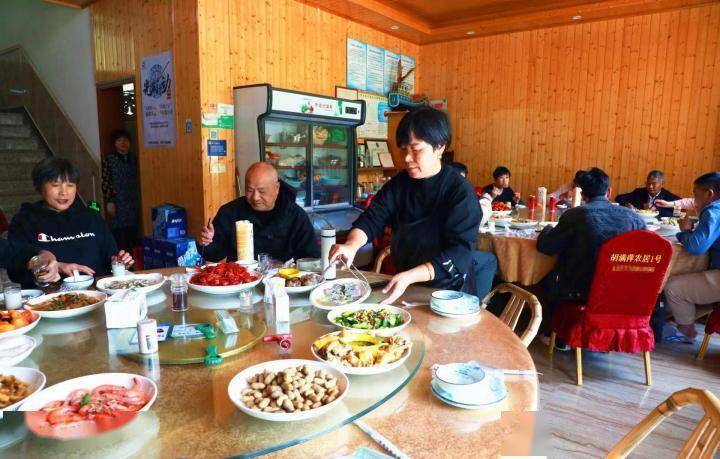 在双林农居1号,三层三间楼房格外显眼,屋前的停车场停满了车辆。时值中午,厨房里已是炊烟缭绕,热气升腾,一股股浓浓的肉香、笋香直往鼻子钻。山笋炖肉、烤土豆、山黄精焖土鸡、宁海小海鲜等特色美食一个接着一个端上桌。“这几天每天要为50多个客人准备三餐,还有很多客人自己家安排不下就让别的民宿来接待。”民宿主胡满萍开心地说,今年“五一”价格没有涨,还是200——250左右一天,包括一日三餐和住宿。