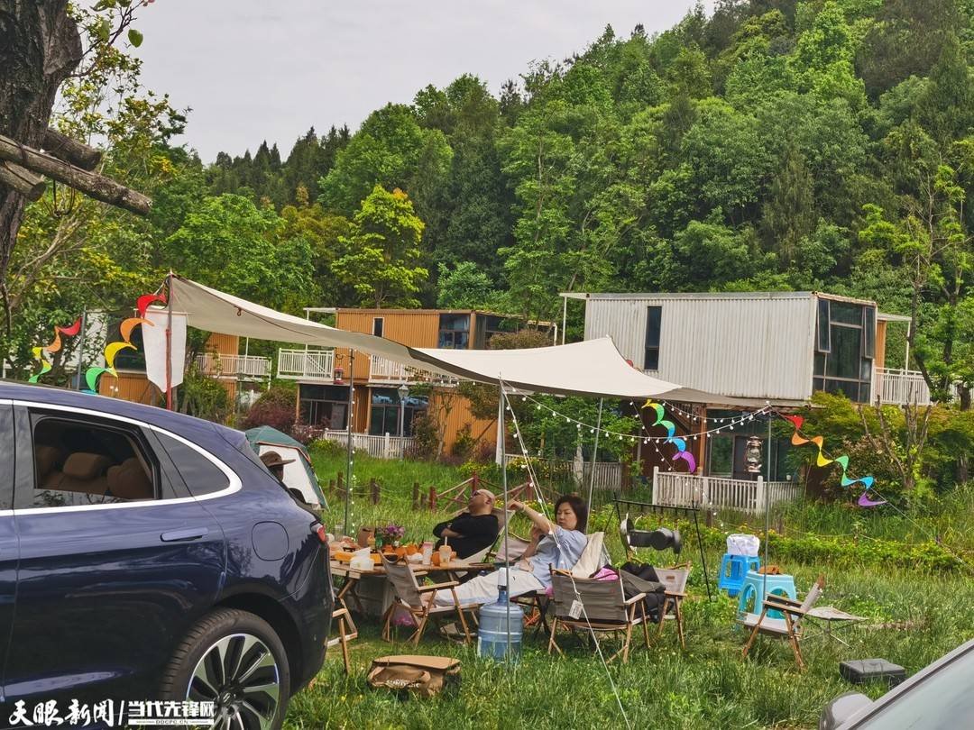 5月1日,位于遵义市新蒲新区新舟镇的樱花谷房车露营基地,迎来了三年以来的游客高峰。