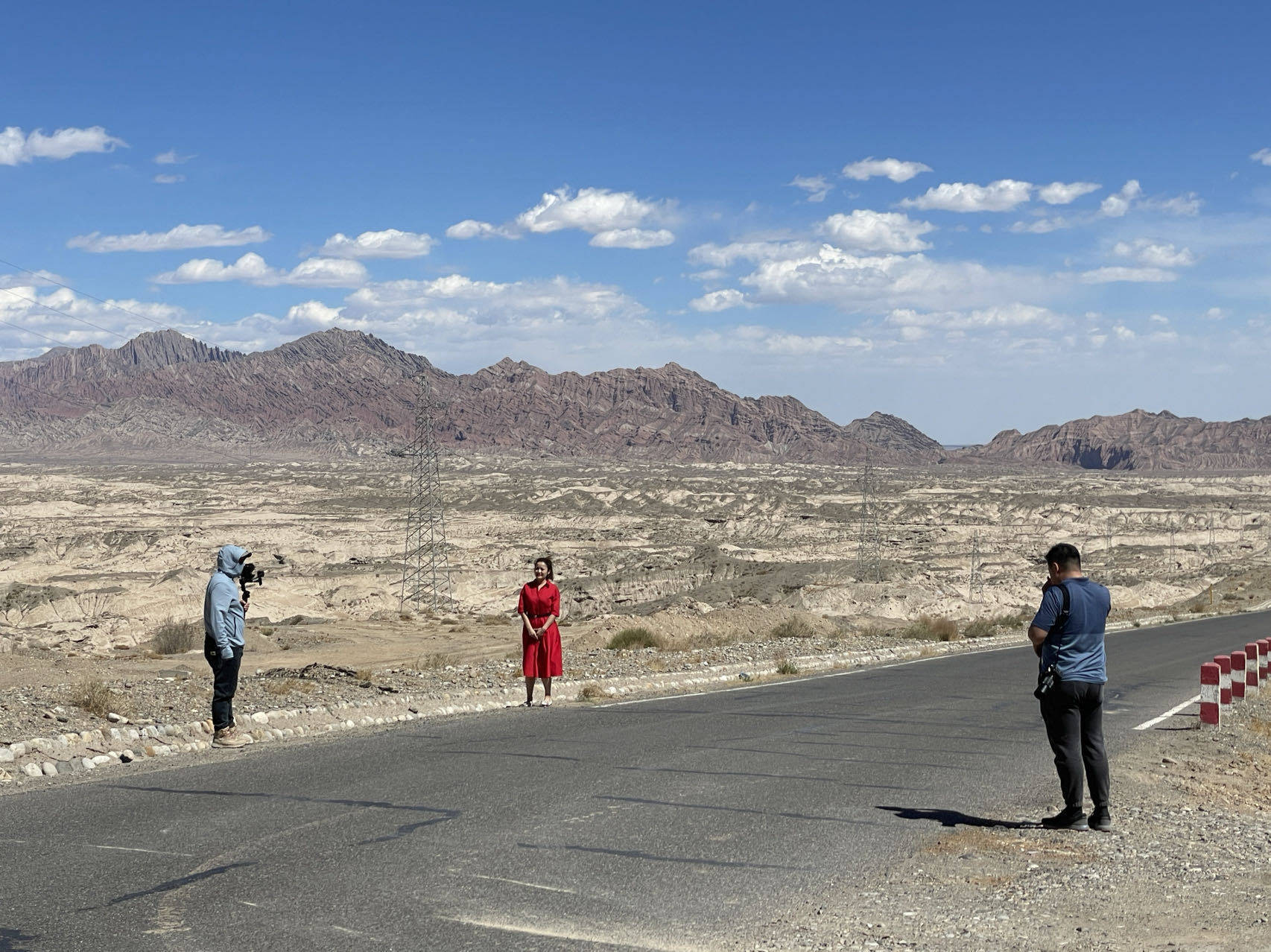 在新疆维吾尔自治区拜城县的一条网红“U型公路”旁,拜城县文旅局副局长苏比努尔·外力正在与北京来的摄制团队一起,拍摄新一期的推荐视频。他们为了追求更好的效果,哪怕一段几秒钟的介绍,也要反复七八次才能过。路过的游客不时停车拍照留念,还有的认出了这位网红局长。苏比努尔的抖音号“苏局说拜城”开通一年,已经有了100万点击量,30多万粉丝。