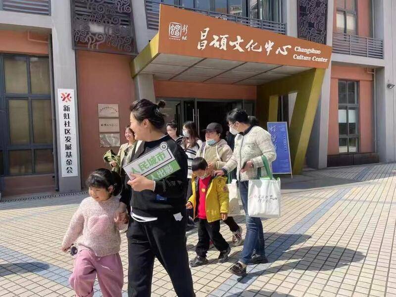 亲子家庭和白领参加新虹街道组织的美育徒步行走活动。