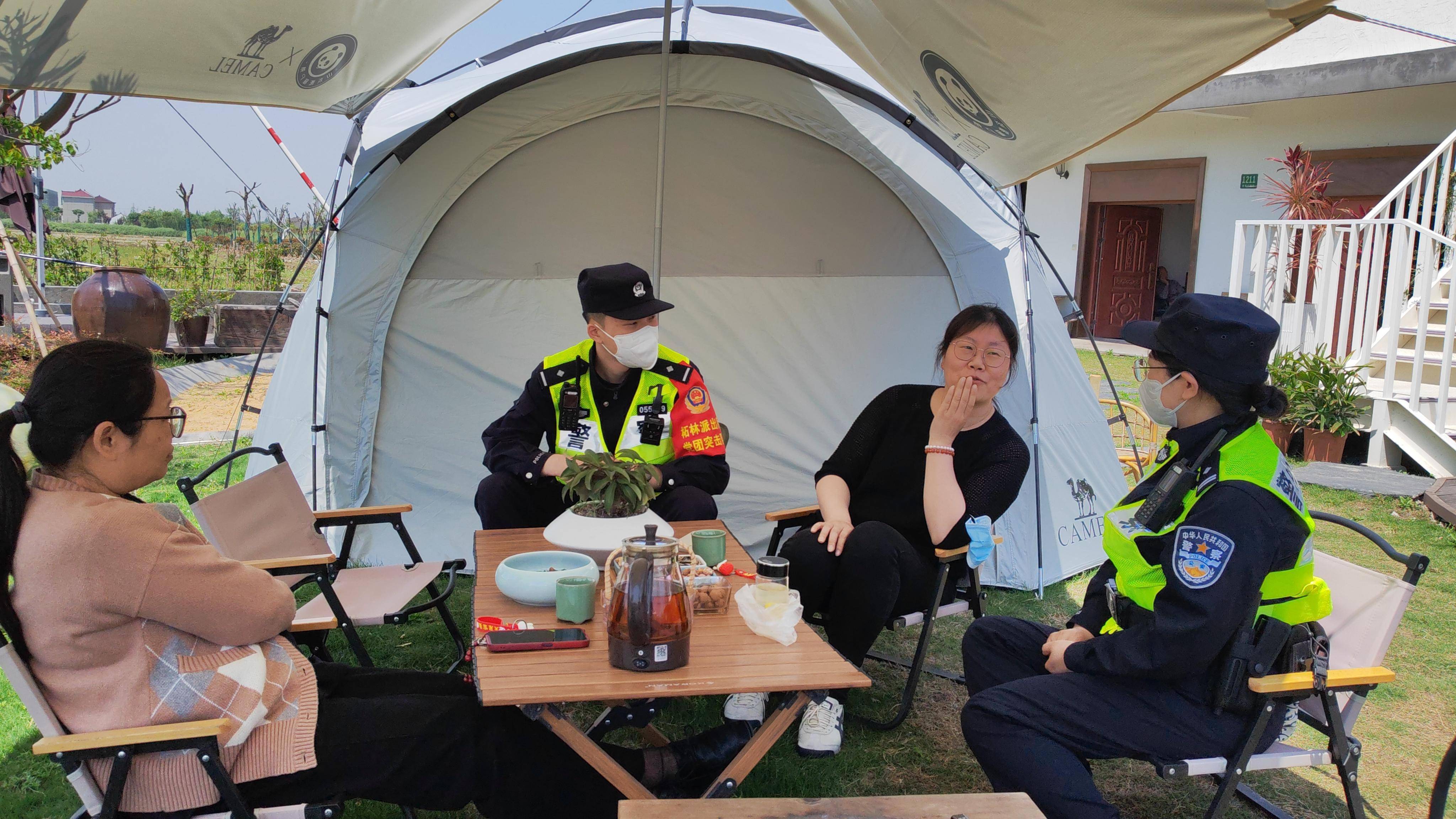 市民许先生带着家人从金山区自驾来度假,民警贴心提醒其“开车不喝酒,喝酒不开车”,并祝他们全家玩得尽兴;当地村民肖大姐带着亲戚一起参加聚会,热情告诉民警怕外出堵车,就近来这里看看风景,很舒服,很享受;从市区赶来体验民宿风情的市民郑先生一家三口告诉民警这里的环境很好,所以节日里和同事拖家带口一起过来,民警提醒他们保管好贵重物品,注意酒后不开车。郑先生笑称自己已经叫好代驾。
