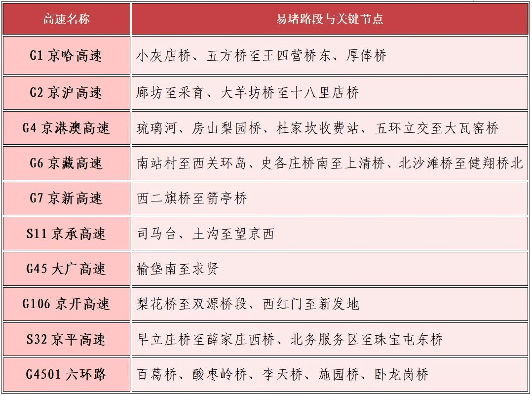 琉璃河、康庄、求贤、司马台等进京检查站在返程时将出现拥堵排队情况。