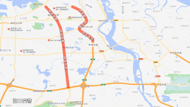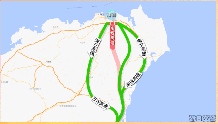 • 如白驹大道进出城流量大,建议途经驾驶人绕行椰海大道→新大洲大道或琼山大道前往海文高速。